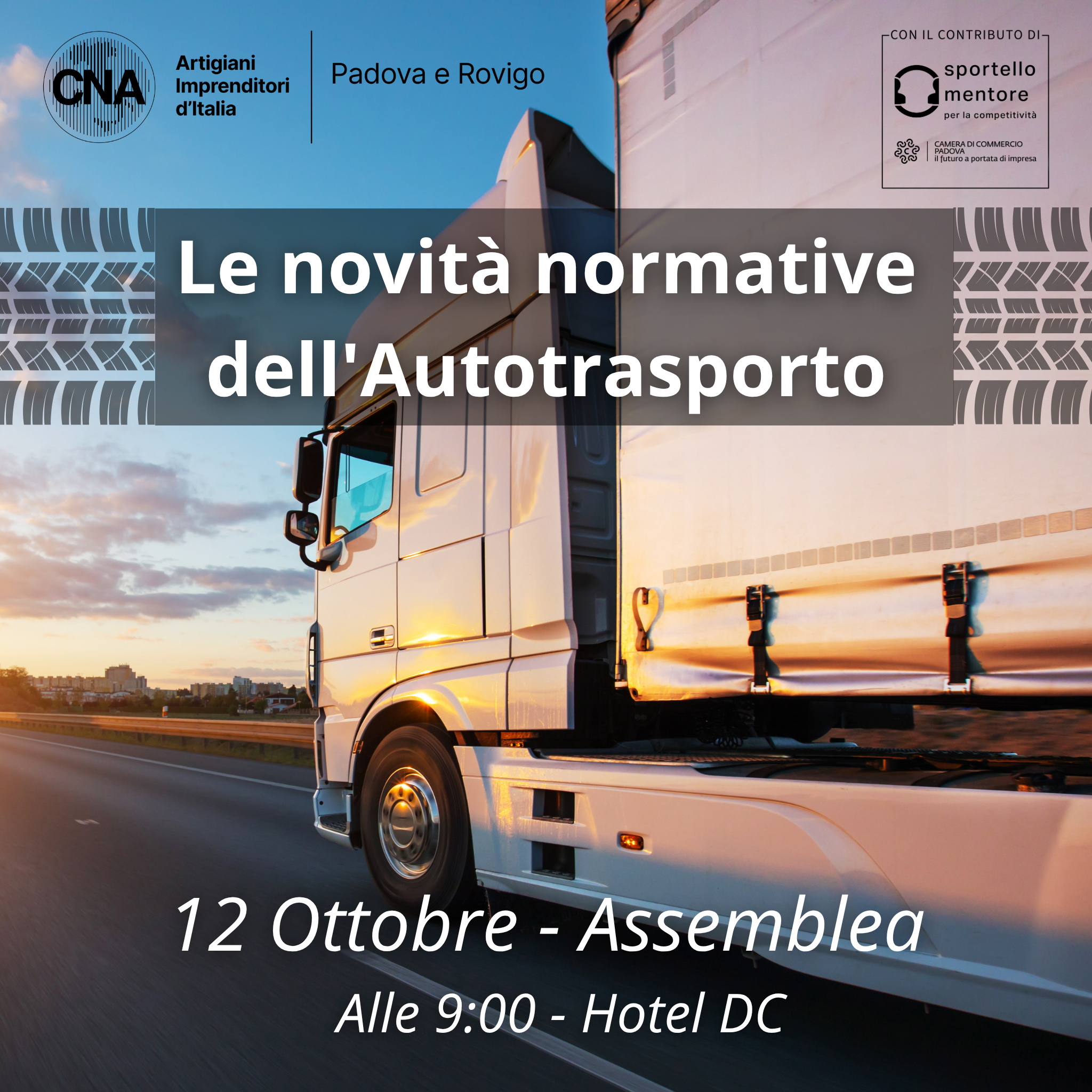 L'evento, realizzato con il contributo della Camera di Commercio di Padova nell'ambito dello sportello Mentore, è un incontro per analizzare le recenti novità normative nel settore dell’autotrasporto.