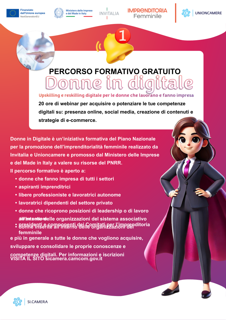 Torna “Donne in Digitale”, il programma gratuito di formazione dedicato alla crescita delle competenze digitali delle donne. L’iniziativa, giunta alla terza edizione, rientra nel Piano nazionale per la promozione dell’imprenditorialità femminile, promosso dal Ministero delle Imprese e del Made in Italy e realizzato da Invitalia in collaborazione con Unioncamere, grazie ai fondi del PNRR.